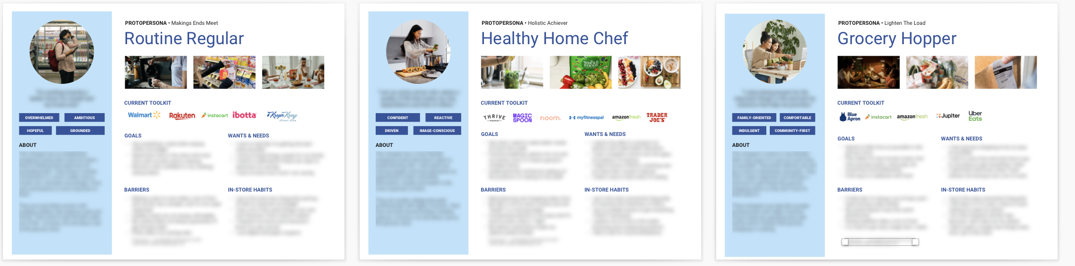 To start tackling these big questions the team paired with a strategic target expert. The team participated in three hour-long sessions to learn about each one of Kroger’s three strategic customer targets.