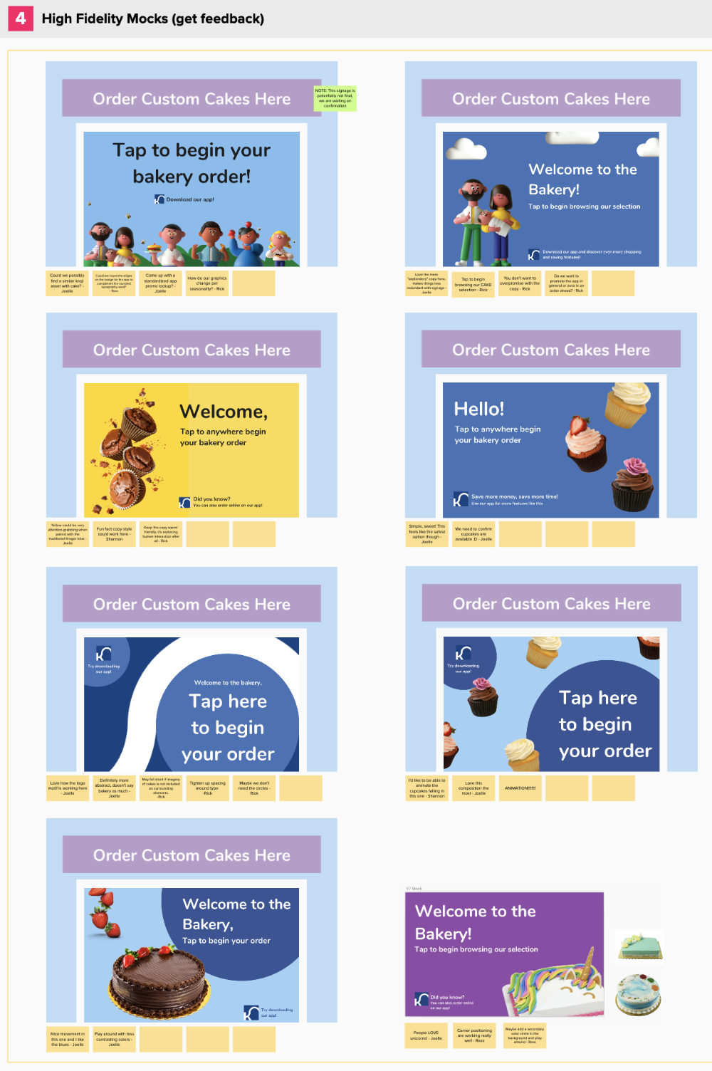 Create high fidelity mocks or interactive prototypes if necessary. These are fully fleshed-out ideas. Iteration is necessary. Repeat the process until the project is ready for feedback.